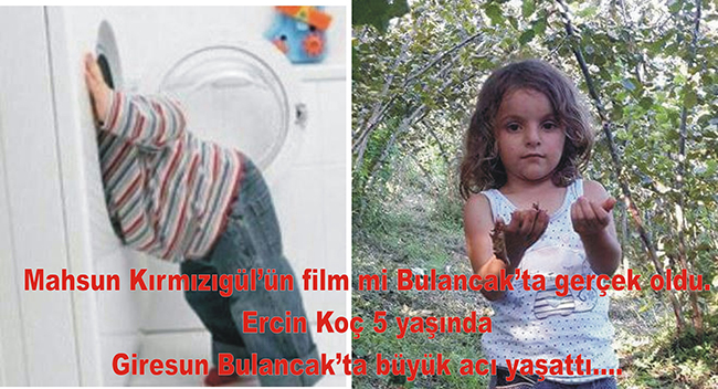 Bulancak Acısu Mahallesi Kesme Taş Caddesi mevkiinde 5 yaşında ki kız çocuğu evde çamaşır makinesi içinde uyur vaziyette bulundu. Okuldan gelen kardeşlerin 5 yaşında ki kız kardeşini evde bulamayınca babalarına haber verdikleri ve tekrar aradıklarında ise çalışmayan çamaşır makinesi içinde babaları tarafından bulundu. Kız çocuğunu uyur birşekilde çamaşır makinesi içinde bulan baba olay yerine sağlık ekibleri çağırdı. Sağlık ekiplerinin olay yerine gelerek kız çocuğuna müdahale ettiği ve hemen Bulancak Devlet Hastanesi’ne kaldırdığı belirtildi. Burada yapılan tüm müdahalelere rağmen 5 yaşında ki kız çocuğunun kurtarılamadığı öğrenildi. 5 yaşında ki kız çocuğunun otopsi için Trabzon adlı Tıp’a gönderileceği belirtildi.