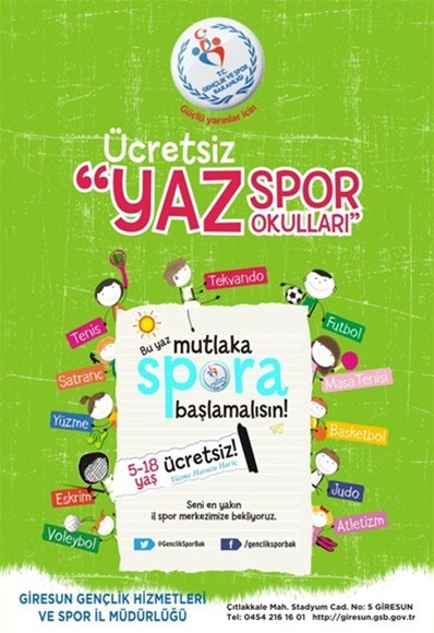 Bu amaçla her yıl açılmakta olan İl Spor Merkezlerinin bu yılki kayıtları başlamış olup, 2015 yılı İl Spor Merkezleri(Yaz Spor Okulları);