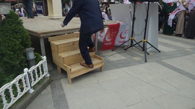 Bulancak seçime son bir hafta kala, meydan konuşmalarıyla hareketlenmeye başladı. Bulancak Cumhuriyet Meydan konuşmaları takip eden bulancakhaber.net meydan kürsüsündeki merdivenin ilçemize, meydanimiza ve konuşmacilara yakışmadığını gördü. Adeta idarelik yapılan, dört beş tahtayi bir araya getirilerek çakılan merdiven ilçemizin nasıl ve kimler tarafından yönetildiğini bir tokat gibi yüzümüze vurmustur. Inşallah bu süreçte bu merdiven yıkılmaz. Milletvekili adayı olan ya da meydan konuşmalar için kürsüye çıkan kişiler merdivenin altında kalmaz. İlçemize yakışmayan kürsudeki merdivenin derhal yetkililer tarafından kaldırılması gerekmektedir.Düzgün sallanmayan ve ilçemize yakışır bir merdiven konulması istiyoruz.