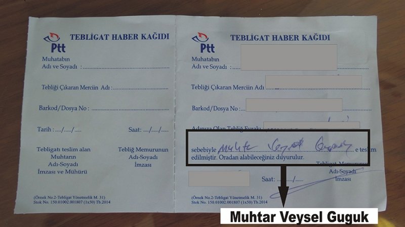 Fotoğraf karesinde görüldüğü gibi tebligat’ta ki yazıyı biz okuyamamıştık. İnanıyorum ki sizlerde okuyamayacaksınız.