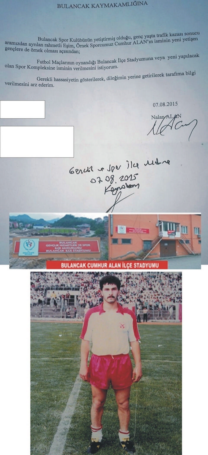 Bu kapsamda Nalan Alan'ın Bulancak Kaymakamı Tayfur Elbasan’a Bulancak İlçe Stadyum'unun isminin eski eşi rahmetli Cumhur Alan'ın adının verilmesi için dilekçe verdiğini bulancakhaber.net olarak siz değerli okuyucularımızla paylaşmıştık.