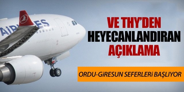 Bu yıl tarifeli seferlere açılması planlanan Ordu-Giresun Havalimanı için THY'den açıklama geldi. Kamuyu Aydınlatma Platformu'na (KAP) yapılan açıklamada Ordu-Giresun Havalimanı'na 2015 yılı içerisinde seferlerin başlanacağı kaydedildi
