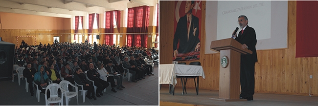 Bulancak Mesleki ve Teknik Anadolu Lisesi'nde "12 Mart İstiklal Marşı'nın Kabulü " ile "Çanakkale Zaferi ve Şehitleri Anma Günü" münasebetiyle konferans düzenlendi. Saygı duruşu ve istiklal marşı ile başlayan, okul müdürü Yusuf Coşkun'un konuşması ile devam eden konferansa konuşmacı olarak; Giresun Üniversitesi, Eğitim Fakültesi Öğretim Üyesi Yrd. Doç. Dr. Nazım Kuruca katıldı. Kuruca'nın Çanakkale Savaşı, Mehmet Akif Ersoy ve Ermeni sorunu konularını harmanlayarak verdiği konferans öğrenciler tarafından büyük ilgiyle takip edildi.