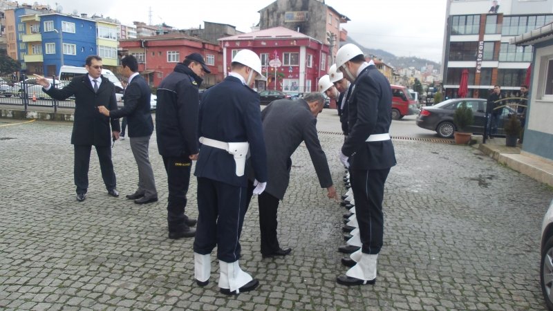 Başbakan Ahmet Davutoğlu, Giresun Valiliği'nde tören mangasıyla karşılandı. Davutoğlu'nun gelişi öncesi yapılan hazırlıklar dikkatlerimizden kaçmadı. Başbakan Ahmet Davutoğlu’nu Giresun Valilik önünde polistören mangası tarafından saatlerce önce Giresun Emniyet Müdürlüğü Asayiş Şube Rıfat Nural Demir tarafından en küçük bir hataya sebep vermemek üzere denetledi. Demir tören mangasındaki polislerin üniformalarını tek tek inceledi. Tören mangası ekibinin üniformalarını kendi elleriyle düzeltti. Giresun Emniyet Müdürlüğü Asayiş Şube Müdürü Rıfat Nural Demir'in bu titiz çalışması gazetemizin objektiflerine böyle yansıdı.