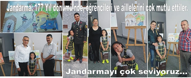 Jandarma Teşkilatının kuruluşunun 177. Yıldönümü münasebetiyle ilçemizde yapılan resim yarışmasında Bulancak Barbaros İlkokulu 3/D sınıfı öğrencisi Sevda Aydeniz 1. olduğu ve tablet verildiği öğrenildi. Daha da önemlisi Jandarma Genel Komutanlığının 81 ilde Jandarma Komutanlığı’nın çıkaracağı dergide dereceye giren resimlerin çıkacak olması aileleride oldukça heyecanlandırıdığı görüldü.