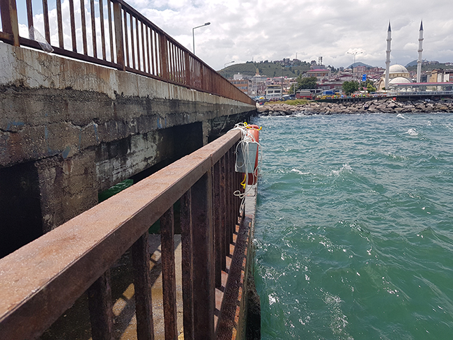 Bulancak İskelesinde yaşanan olumsuzluklara karşı iskelenin her iki tarafında ki pedallarına konulan can simidi, yaşanacak boğulmalara karşı ilk müdahale önlemi olmuş. Gelin görün ki Türkiye’nin en uzun iskelesine bu yeterli olmadığı da sırıtmış.