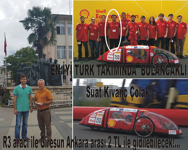 Ülkemize böylesi güzel ve başarılı çalışmayı ODTÜ Robot Topluluğu Temiz Enerji Takımı öğrencilerinin kendi çaba ve çalışmalarıyla üretimini gerçekleştirdikleri alternatif enerjili araç kazandıran gençlerin arasında ve ekipten biri olan Bulancaklı genç, gururumuz oldu.