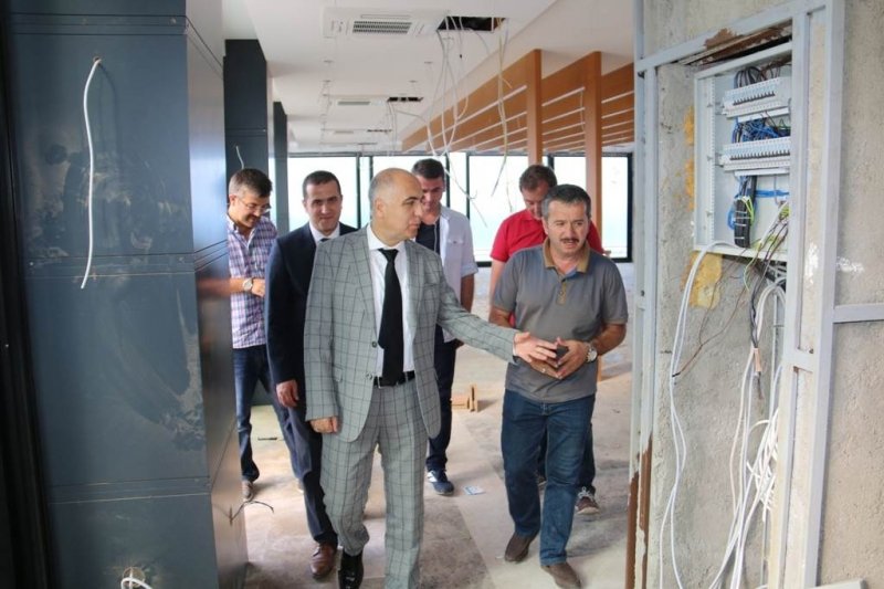 Vali Karahan'ın Piraziz Grand Ravza Hotel inşaatındaki incelemeler sırasında, Piraziz Kaymakamı Hamit Genç'de hazır bulundu.