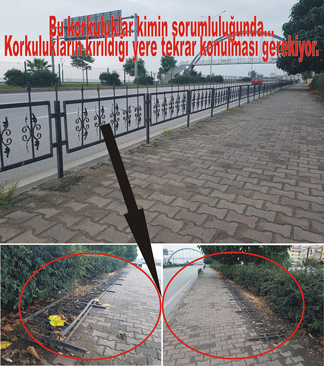 Bulancak sahildeki çitf yol kenarında ki demir korkulukların kırılıp olduğu yere bırakılması ve olduğu gibi kalması kimin sorumluluğunda dedirtti.
