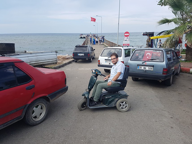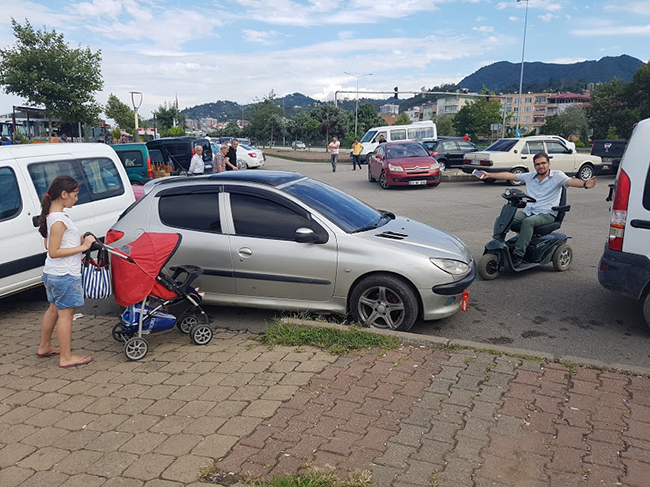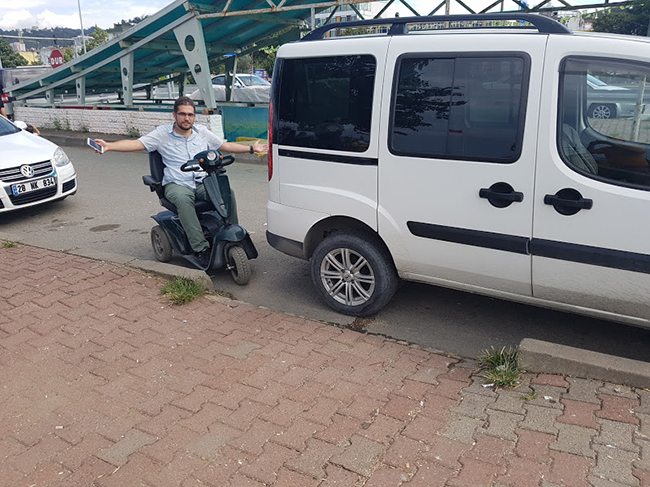 Şehir içinde ve sahilde bırakın engelli olmayı sağlıklı insanların bile arabalar yüzünden yaşadıkları sıkıntılar yetkililer tarafından da biliniyor. Bu durum bilinse bile düşüncesizlik, denetimlerin yetersizliği, cezai işlemin yeterli olmaması caydırıcı olmadığı büyük sıkıntı yaşatıyor. 20 yaşında tekerlekli akülü aracı ile sahilde ne kaldırılma çıkabildiği, ne de neredeyse iskeleye dahi girebilecek durumu kalmadığı objektiflerimize böyle yansıdı.