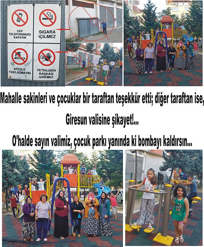 Bu durum karşısında Bulancak İhsaniye Mahallesi Şehit Ülkü Akbulut ile Lale Sokak sakinleri yaşanan sıkıntıyı, Ohal yönetiminde sayın Giresun valimiz Hasan karahan’a bulancakhaber.net ile duyurarak göreve davet ettiler. Giresun Valisi Hasan Karahan’ın çocuklarımızın oyun alanı ile iç içe olan sanayi tüplerinin çocuk parkıyla iç içe olması tehlikesi nedeni ile derhal kaldırılmasını istediler.