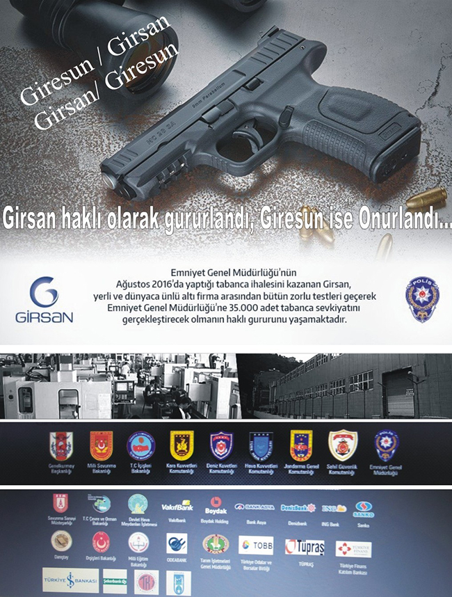 Giresun Girsan, Emniyet Genel Müdürlüğünün Ağustos 2016 gıda yaptığı tabanca ihalesini kazanarak yerli ve dünyaca ünlü 6 firma arasında bütün zorunlu testleri geçerek Emniyet Genel Müdürlüğü'ne tabanca sevkiyatını kazanmıştır.