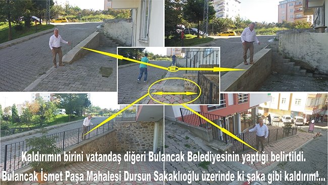 Bir tarafta vatandaşın kendi imkanlarıyla yaptığı kaldırım bir diğer tarafta ise Bulancak Belediyesinin yaptığı söylenen kaldırım. Vatandaşın yaptığı kaldırım standartların üzerindei hemen uzantısında ki kaldırım ise her an bir kazanın yaşanabileceği bir kaldırım olarak objektiflerimize yansıdı.