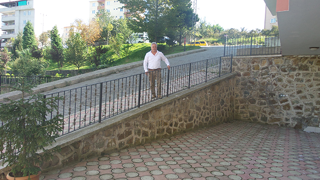 Dursun Sakallıoğlu Caddesi üzerinde ki evinin önüne gelen kaldırımı döşemesinden korkuluklarına kadar kendi öz kaynaklarıyla özel olarak yaptıran vatandaşın kaldırımı ile kaldırım uzantısını yapan Belediye Başkanlığının yaptığı kaldırım arasında ki fark çok şaşırttı.