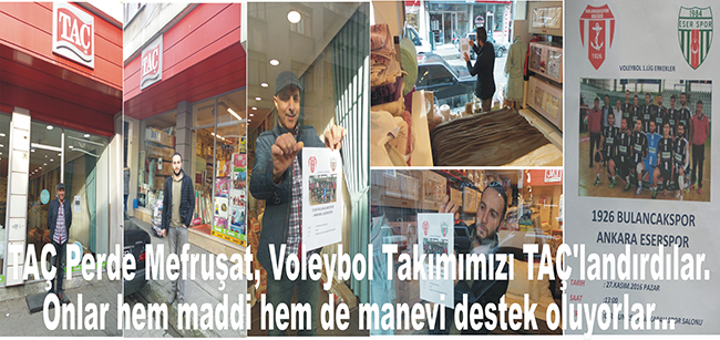 Giresun Bulancak İlçesi 1. Lig Voleybol Erkekler Takımı olan 1926 Bulancakspor’un her daim hem maddi hem de manevi yanında olduklarını belirten TAÇ Perde Mefruşat sahipleri takımımızın macını kendi iş yerinde ilan asarak duyurdukları objektiflerimize yansıdı.