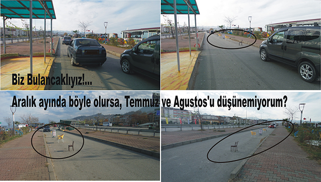 Karayolları yan yolların trafiği rahatlatması için yaptığı bu yan yol amacı dışı kullanımı Aralık ayında böyle olursa yazın Temmuz ve Ağustosta ayında nasıl olur acaba dedirtti. Yan yollar park yapmak için değilde şehir içine giriş ve çıkışlarda araçların trafik akışını tehlikeye sokmadan haraket etmesi için yapılmıştı. Yan yol sanki park yeri gibi kullanılırken iş yeri de sandalye ile Karadeniz çiftyolunu nasıl olurda böyle kapatır dedirtti. Hatta ve hatta geçen yaz bu kaldırımlar üzerinde başka bir işletme sahibinin eğlence yaptığı ve cemiyet günü düzenlediği de yaptığı görüldü. Burada yaşanacak bir kazadan kim sorumlu olacak. Bu yolları nasıl olurda sandalye ile sahiplenirsiniz. Bulancak’daki Karayollarının yaptırdığı alt geçide “SANAT GALERİSİ” olarak gösteren ve yazanlar bu yan yola konulan sandalyelerden haberi var mı acaba?...
