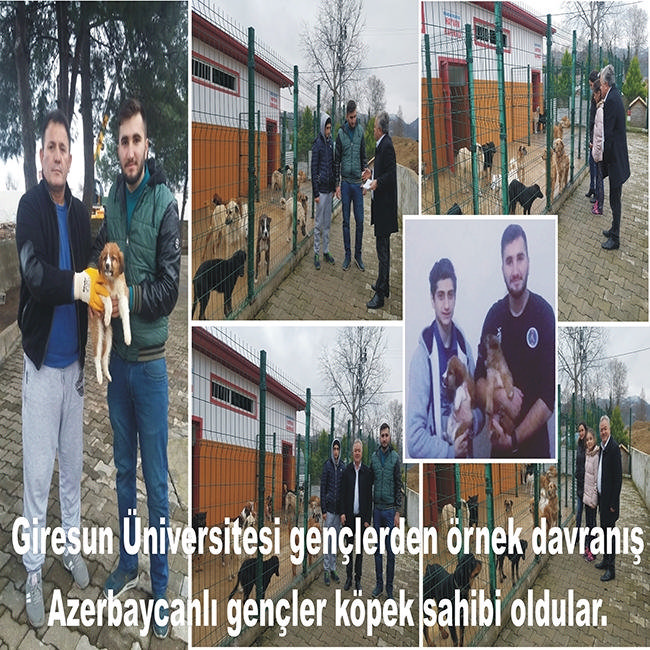 Azerbaycan Bakü’den Giresun Üniversitesi Bulancak Kadir Karabaş Uygulamalı Bilimler Yüksekokulu- Turizm İşletmeciliği ve Otelcilik Bölümü’nde okumaya gelen Tahir Mammedov ile Murat Aliyev, Bulancak Hayvan Barınağı’na gelerek köpek sahibi olmak istediklerini Bulancak Hayvan Barınak Sorumlu görevlisi Ahmet Gedik’e belirtiler. Barınak sorumlusu Ahmet Gedik, hayvan sevgisi ve hayvan dostu olan üniversiteli gençlerin isteği doğrultusunda kendilerine köpek sahibi edinmesinde yardımcı oldu. Giresun Üniversiteli gençler örnek bir davranışta bulunurken soğuk kış günlerinde evini yaplaşacakları iki yavru köpek sahibi olarak mutlu ve heyecanlı bir şekilde ayrıldıkları görüldü.