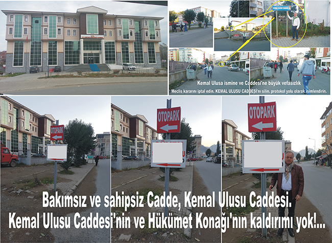 Bazı yerel gazetelerde ve bazı yetkililerin ne hikmetse sürekli olarak “PROTOKOL YOLU” dediği fakat gerçek adının MECLİS KARARI İLE “KEMAL ULUSU CADDESİ” olduğu kaldırımsız caddenin bazı bölümlerinde kaldırım olmaması ve kaldırım olarak ayrılan bölümde ise reklam panolarının yayalar için teklikeli olduğunun farkında mısınız!...