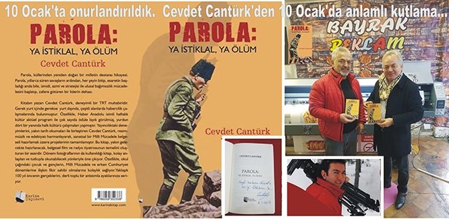 TRT Haber Anadolu Programı Yapımcısı Cevdet Cantürk “10 Ocak Çalışan Gazeteciler Günü” dolayısıyla Giresun eski TRT Yurt Muhabiri İsmet Küçükbayrak ve Bulancak TRT Yurt Muhabiri Mehmet Yaşar’a “PAROLA: YA İSTİKLAL, YA ÖLÜM” adlı kitabını imzalayarak hediye etti.