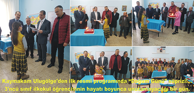Bulancak Kaymakamı Niyazi Ulugölge ilkokul 3’ncü sınıf öğrencisi Gamze Gür’e Karne Günü’nde unutamayacağı “Doğum Günü”Süprizi ve sınıf arkadaşlarına Karne Günü’nde Kitap hediye öğrencileri oldukça heyecanlandırdı. Okulların yarıyıl tatiline girdiği günde Bulancak Kaymakamı Niyazi Ulugölge’nin talimatı ile ilçe programı yapılacak olan Barbaros İlkokulu’nda “o gün doğum günü olan bir öğrencimizin sınıfında karne dağıtımı yapmak istiyorum” sözleri üzerine Okul Müdürü Musa Yavuz’un belirlediği 3/F Sınıfı öğrencisi 8 yaşında ki Gamze Gür’e hayatı boyunca unutamayacağı bir doğum günü süprizi hazırlatıldı.