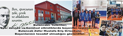 Aynı okulumuz Bulancak Züfer Mustafa Eriş Ortaokulu şimdi de spor dalında Badminton kızlarda Giresun il şampiyonu olarak bir kez daha bizleri gurur ve onurlandırdı. Bulancak Züfer Mustafa Eriş Ortaokulu Giresun'da yapılan Okullar arası Badminton il şampiyonasında bütün rakiplerini yenerek il şampiyonu olması büyük heyecan yaşattı. Bulancak Züfer Mustafa Eriş Ortaokulu Beden Eğitimi ve aynı zamanda Badminton Takım Antrenörü Hasan Karataş, “öğrencilerim çok çalıştı ve bu başarıyı hak etti. Oyuncularımın hepsini teker teker kutluyorum” dedi. Öte yandan Bulancak Züfer Mustafa Eriş Ortaokulu Müdürü Turgut Kılıçarslan ve okul yönetiminin Badminton Takım oyuncularını tüm maçlarını final maçları heyecanında desteklediklerini ve takip ettiklerini söylediler. Badminton Takım oyuncularını yalnız bırakmadıklarını vurguladılar. Bulancak Züfer Mustafa Eriş Ortaokulu 14-16 Nisan tarihinde Giresun'u temsilen Rize'de yapılacak olan grup müsabakaların da Bulancak takımının Giresun’un ilimizi temsil edecek olmasını oldukça kendilerini gururlandırdığını ve bu başarılarının tesadüf olmadığını bir kez daha göstermenin mutluluğunu yaşadıklarını açıkladılar.