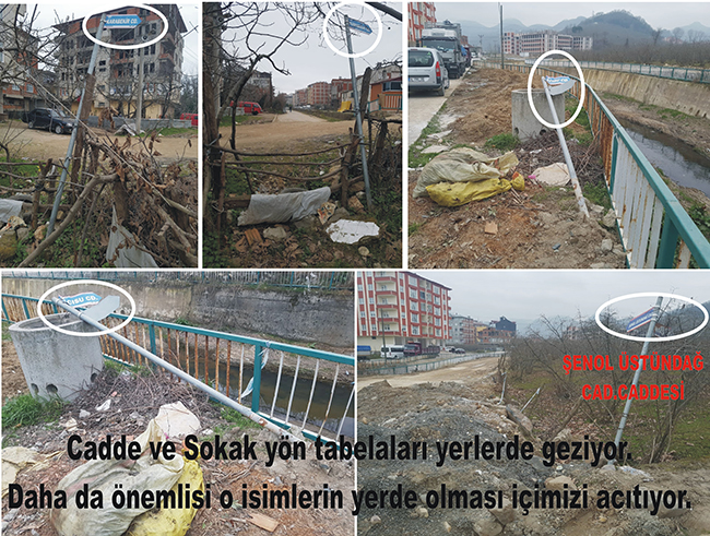 Tüm bunlar yaşanırken trafik levhalarının bakımsız, kirli, kırık, eğik olması ve bir de şehir içinde Cadde ve Sokak yön levhalarının yerde olması yetkililerin dikkatinden mı kaçtı acaba dedirtti.