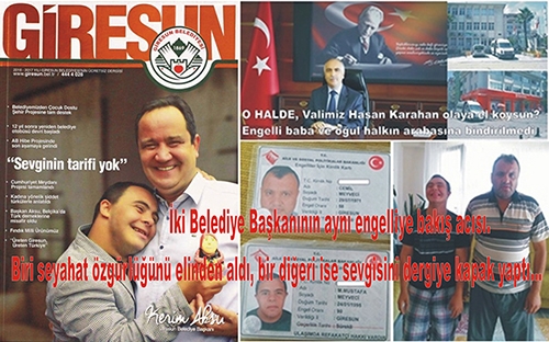 Öte yandan tüm bu olumsuzluklar yaşanırken Bulancak Belediye resmi aracını kullanan ve Belediye personeli olmayan araç sürücüsünün arabaya almadığı o güzel baba ve oğul Giresun Belediye Başkanlığının dergisine sevgi dolu sarılışı ile görüşmüştür. İki Belediye Başkan ve arasında ki fark dedirten bu tesadüf Giresun Belediye Başkanı Kerim Aksu ile Bulancak Belediye Başkanı Recep Yakar arasında ki Sosyal Belediyecilik bu olur dedirtti. Aynı engelliye bir Belediye Başkanı Recep Yakar, seyahat özgürlüğünü elinden alması haber konusu olurken ve olayın olduğu zamanda gündem oluşturmuşken, bir diğeri Belediye Başkanı Kerim Aksu’nun ise aynı engelliyle kucaklaşması sevgisini göstermesi Belediyenin dergisine kapak yapması bulancakhaber.net objektiflerine böyle yansıdı. Daha da önemlisi Giresun Belediye Başkanı resmi Belediye aracını özelden alıp iyi hizmet veremiyorsunuz diye Belediye tarafından tüm engellilerin, gazi ve 65 yaş üstü vatandaşların daha sağlıklı ve ücretsiz özgürce seyahat etmelerini sağlamak adına kendileri iptal etmeyerek yeniden çalıştırma kararı almıştır.