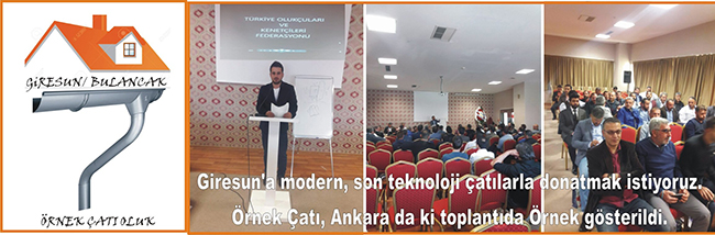 Giresun Örnek Çatı Firması Dış İşler Sorumlusu Erdem Dik firma yetkilileri adına kürsüde yaptığı konuşmasında şunlara değindi. Dik, “Örnek Çatı olarak Giresun’a modern çatıları sunmak ve yenilikleri tanıtmak istiyoruz. Giresun ilini son teknoloji çatılarla donatmak amacındayız. Türkiye geneli aynı işi yaptığımız sizlerle bir arada olmak ve Giresun’u temsil etmekten dolayı büyük mutluluk yaşıyoruz. Bizler yaptığımız işle ile binaya son şeklini veren insanlarız” dedi. Ankara’da gerçekleştirilen toplantının oldukça verimli geçtiği ve yeniliklerin önümüzde ki günlerde Örnek çatı olarak Türkiye de aynı anda uygulamaya başlanacağı belirtildi. Son olarak ta Örnek Çatı yetkililerinin son sistem çatı olukları görmek isteyen müşterilerinin binalarının son dokunuşu olan çatı oluklarının görmek ve bilgi almak adına mutlaka firmalarına uğramalarında fayda olacağı açıklandı.