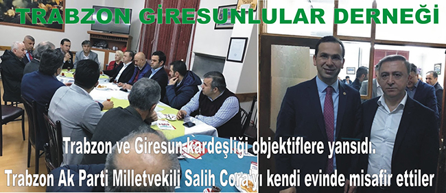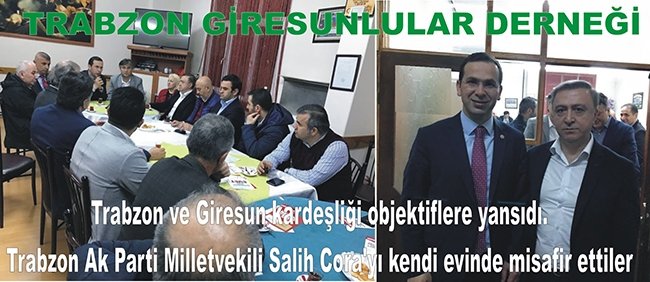 Trabzon Giresunlular Derneği Başkanı Göreleli Murat Çakır ile Başkan Yardımcısı Bulancaklı Kadir Başat Çolak Trabzon Ak Parti Milletvekili Salih Cora’yı kendi evinde misafir ettiler.