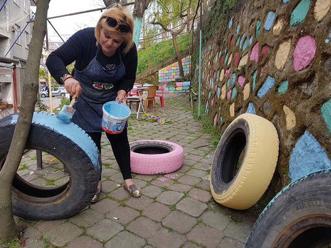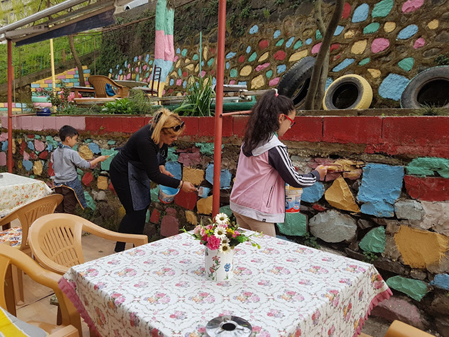 Baharın gelişi ile iş yerini rahatlatan ferahlatan Bizim Ev Yemekleri iş yeri işletme sahibi Sonay Çolak sadece iş yerini değil iş yerinin çevresini de rengarenk boyalarla güzelleştirdi. Bulancak ilçesinde ev yemeklerinin lezzeti ile farklı bir sunum yapan ve bu lezzeti görselliğe de yansıtan Sonay Çolak bulunduğu yere ayrı bir güzellik kattığı görüldü.