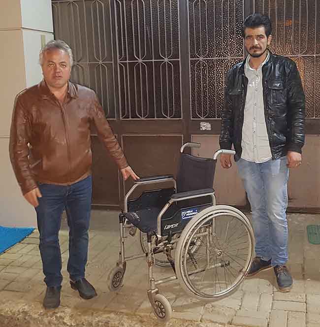 Bulancak Karadeniz Alüminyum işletme sahiplerinden Taner Karabaş her zaman ki gibi gün içinde işlerini bitirmiş eve giderken çöpte gördüğü tekerlekli sandalye ya kayıtsız kalamadı. Çöpe atılmış olan ve birçok parçalarının kullanılabilecek olduğunu gördüğü tekerlekli sandalyeyi çöpten alıp tanıdığı ve bu işlerle uğraştığına inandığı Mehmet Yaşar’ın evinin kapısına saatin geç olmasına bakmaksızın götürdüğü objektiflerimize böyle yansıdı. Geç saatte önce telefon açarak sonra da evinin kapısına gelen duyarlı ve hassas bu gencin çöpte bulduğu birçok parçasının yedek parça olarak kullanılabileceğine tanık olan Yaşar’da bu duruma kayıtsız kalmadı. Taner Karabaş’ın geç saatte evinin kapısına kadar getirdiği tekerlekli sandalyeyi teslim alan Yaşar Bulancak Engelliler Derneğini arayarak parçalarını kullanabileceğine inandığı tekerlekli sandalyeyi almalarını istedi. Tekerlekli sandalyesi olup ta tekerleği bozulan veya fren sistemi arıza yapan araçların yararlanabileceği tekerlekli sandalye yada kullanmadığınız bir eşyanızı çöpe atmadan önce bir kere daha düşünmenizi bir göz geçirmeden atmamanızı diliyoruz. Hatta bu ve buna benzer geri dönüşümü olan eşyalarınızı sakın çöpe atmayın kullanabilecek insanlarla iletişime geçin.