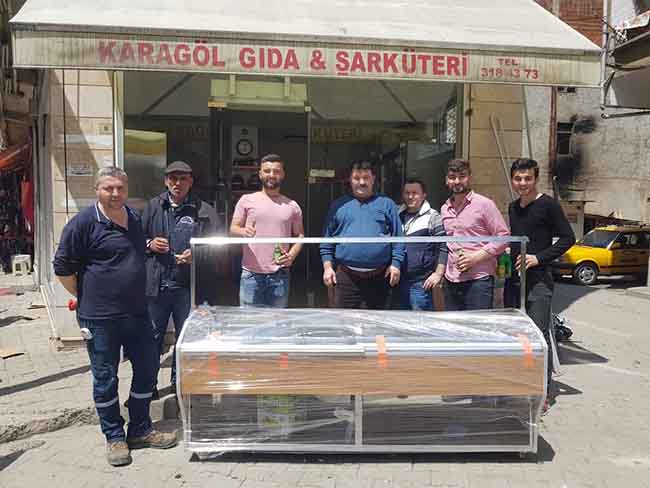 Giresun Bulancak ilçesinde Karagöl şarküteri olarak hizmet veren iş yeri tüm soğuk hava dolaplarını Engin Soğutmaya yeniden son model ve son teknoloji donanımıyla yeniden yaptırdığı objektiflerimize yansıdı. Üretime yönelik çalışmalarıyla ve ürettiği birbirinden değerli soğuk hava dolapları, soğuk hava tezgahı ve diğer tezgah çeşitleriyle adeta Bulancak’ta bacasız sanayi olarak nitelendirilen “ENGİN SOĞUTMA” işletme sahibi Cevdet Engin’in başında montajı yapılan dolapların ve her ürettiği diğer ürünlerde Bulancak’ın alın teri her dolapta parmak isi olduğunu açıkladı. Bununla birlikte ilçe ekonomisine girdi sağlayan Engin Soğutma tüm kazanımını Bulancak’ta paylaştığını söyledi. Türkiye genelinde birçok bölgede yaptığı işlerle kendinden söz ettiren ve aranan, kabul gören “ENGİN SOĞUTMA” işinde uzman ve kaliteyi yakalamış marka olmuş ürünlerinin muhafaza edilen dolapları ürettiği çeşitleri Bulancak esnafının yoğun ilgi gösterdiği görüldü.