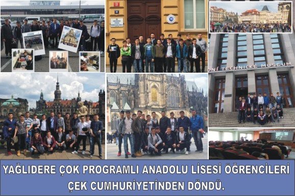 AB Eğitim ve Gençlik Programları Merkezi Başkanlığınca yürütülen 2016-1-TR01-KA102-027838 numaralı “Avrupa’yla Enerji Tasarrufu” adlı Erasmus+ Hareketlilik projesi kapsamında, okulumuz Yağlıdere Çok Programlı Anadolu Lisesi 01.05.2017-15.05.2017 tarihleri arasında Çek Cumhuriyeti/Prag şehrine proje hareketliliğini gerçekleştirerek yurda döndü.