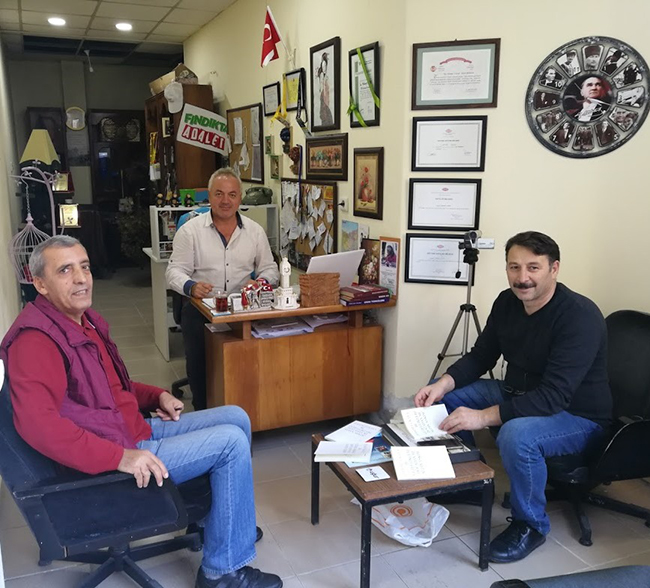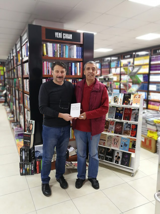 “BU GÜZELLİKLERİ DOĞADAN MI ALDIN AŞKIM” adlı ilk şiir kitabını CİNİUS Yayıncılık Yayınevi tarafından ilk baskısını çıkarttı. Bulancak ve bölgemiz yazarlarına ve şairlerine her zaman yanında ve iş yerinde raflarında yer veren Özen Kitabevi Sahibi Ahmet Kara daha önce ki yazarlarımız ve şairlerimize gösterdiği ilgiyi aynı şekilde Haşim Elkaya’ya da gösterdi. Ahmet Kara Bulancaklı şair Haşim Elkaya’ya da iş yerinin kapısını açarak yeni çıkan şiir kitabını satışa sundu. Ayrıca Ahmet Kara, Haşim Elkaya ile birlikte kamuoyuna duyurmak adına bulancakhaber.net’i ziyaret ettiler. Elkaya ilk şiir kitabının ilk imzalı olanını bulancakhaber.net Genel Yayın Yönetmeni Mehmet Yaşar’ın kızları Lidya ve Asya’ya imzalayarak sundu. Şiir kitabını kamuoyuna duyurmak adına bulancakhaber.net Genel Yayın Yönetmeni Mehmet Yaşar’ı ofisinde ziyaret eden Elkaya Ahmet Kara ve Mehmet Yaşar’ın kitabı ve kendisi ile ilgili yakın ilgi göstermesi her iki tarafı oldukça memnu ettiği görüldü.