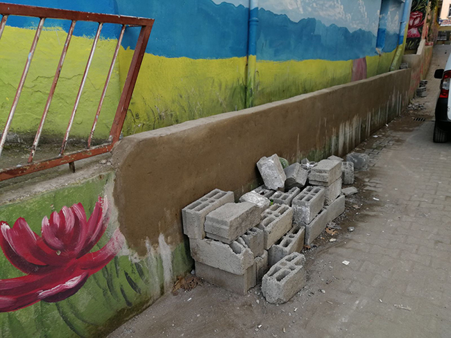 bulancakhaber.net’in defalarca kaleme aldığı ve adeta Bulancak’ın sorunları arasında yerini koruyan okul önünde çalışmalar devam ediyor.