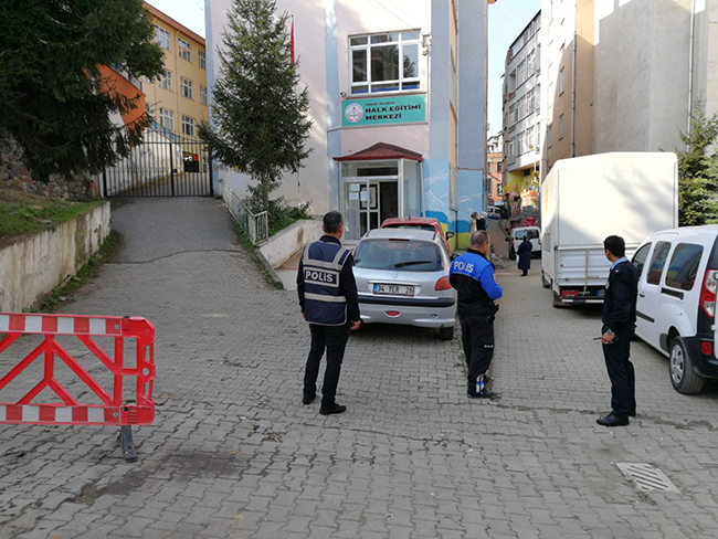Bulancak Şehir merkezi içinde bulunan Halk Eğitim Merkez ve Barbaros İlkokulu önünde Bulancak Emniyet Müdürlüğü ekiplerinin Toplum Destekli Birim ile birlikte çalışma yaptığı objektiflerimize böyle yansıdı. bulancakhaber.net’in daha önceleri “İlçemizi idare edenler, bu kararlıkta olması gerekir” başlıklı yazısı ile Bulancak Mahallesi ana girişi niteliğini taşıyan ve konumu gereği hem otopark hem de çöp toplama merkezi görüntüsü hiç bitmeyen yaya yolu sorunlarına bir kez daha incelemeye alındı. Bulancak Barbaros İlkokulu kapısının ve Bulancak Halk Eğitim Merkezi ana giriş kapılarının ortak kullanıldığı alanda Bulancak ilçe Emniyet Müdürü Turgay Kovancı’nın daha önceden bizzat inceleme yaptığı objektiflerimize yansımıştı. O gün incelemeler doğrultusunda Halk Eğitim Merkezi ile birlikte yay yolu üzerinde oturma alanı gibi olan bölgenin duvarı yükseltilerek gençlerin gece geç saatlerde oturması engellendiği bir nemse olsun sorunun giderildiği bölge halkı tarafından dile getirildi. Fakat aynı bölge de yaya yolu olan yolun otopark gibi kullanılmasının bir türlü önüne geçilemediği görüldü. Öte yandan bu bölgeden kurtarılan gençlerin mahallenin iç Kısımında bulunan metruk alan niteliği taşıyan bölgede özellikle araç yolu olmaması ve gözden uzak olması sebebiyle gençlerin şimdi de bu alanda toplandıkları öğrenildi. Bulancak şehir merkezinde belirli noktalarda öğrencilerin toplandığı sigara içtiği buluşma noktası olarak kullandığı alanları İlçe Milli Eğitim Müdürü Şenel Bulut’a ve emniyet güçlerine bilgi verilerek gerekli önlemlerin alınması istendi. Edinilen bilgiye göre Bulancak kaymakamı Niyazi Ulugölge’nin bu konuda hassas davrandığı sıkı takipçisi olduğu belirtildi.