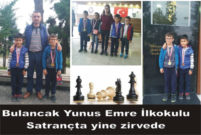 Giresun da yapılan Satranç Turnuvası 1,2,3 ve 4.sınıfları kapsayan ilkokul kategorisinde Bulancak İlçemiz Yunus Emre İlkokulu 3.sınıf öğrencilerinden Eymen Talha Turfan 1. oldu. Diğer taraftan ise Burak Taha Bulut 3. olarak Yunus Emre İlkokulu' nu zirveye taşıdıkları görüldü. Bulancak Yunus Emre İlkokulu öğretmenlerinden Ercan Zehir öğrencilerinin birinci sınıftan bu yana sistemli olarak azimli ve planlı çalışmalarının meyvelerini aldıklarını söyledi. Başarılı olan öğrencilerini bu azimlerinden dolayı tebrik etti.