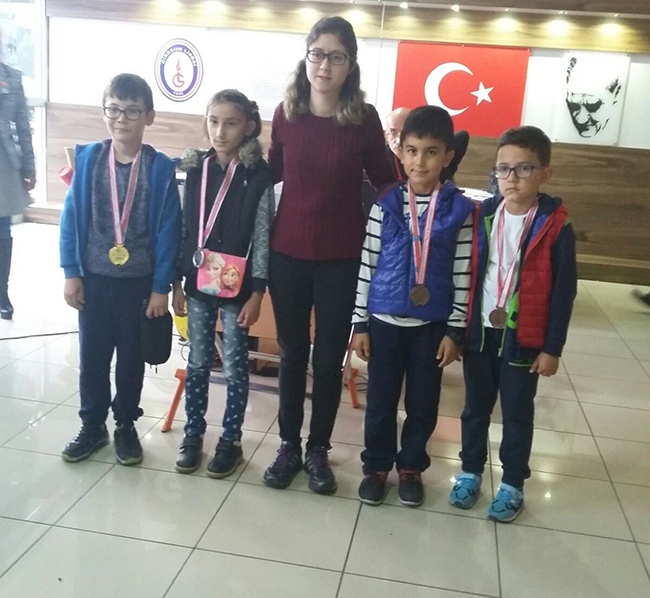 bulancakhaber.net ilçemizi Satrançta her zaman olduğu gibi yine zirveye taşıyan Bulancak Yunus Emre İlkokulu öğrencileri Eymen Talha Turfan, Burak Taha Bulut ve öğretmenleri Ercan Zehir’i tebrik ediyoruz.