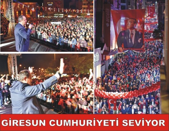Ellerinde Türk Bayrakları ile Atatürk Meydanı’nı dolduran kalabalığa hitap eden Belediye Başkanı Kerim Aksu; “Giresun Cumhuriyet’i seviyor, bende sizi seviyorum” diyerek sözlerine başlarken Giresun’dan Cumhuriyetin fotoğrafını verdiklerini belirterek, Cumhuriyet tutkunu Giresunlulara teşekkür etti.