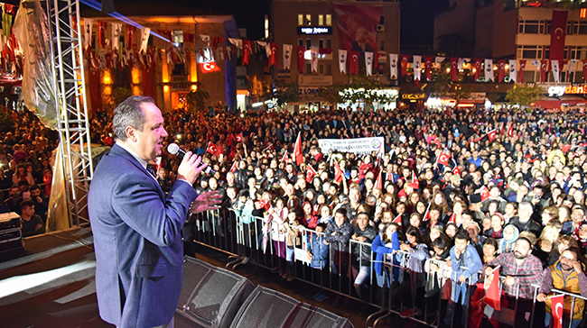 Başkan Kerim Aksu’nun konuşmasından sonra 15 dakika süren havai fişek gösterisi yapıldı. Atatürk Meydanı’ndaki şölen Belediye Konservatuarı sanatçılarının 2 saat devam eden konseri ile sona erdi.
