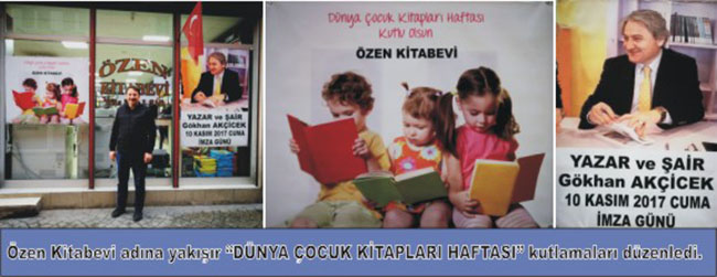06 Kasım ayının ikinci Pazartesi günü başlayan 12 Kasım 2017 de son bulan “DÜNYA ÇOCUK KİTAPLARI HAFTASI” Özen Kitabevi tarafından bir dizi etkinliklerle kutlanacağı açıklandı.