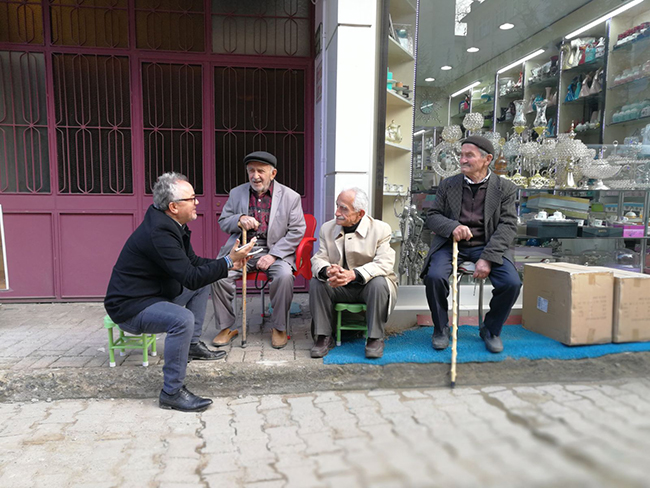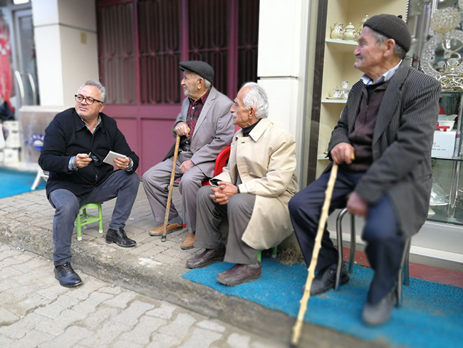 Gençlik yıllarında eski ve sayılı Bulancak sokaklarında büyüyen ve bu günlere gelen eski 90’lık dostlar dışarıda birbirlerini görünce eski günleri anmadan ve hoş sohbet etmeden ayrılmadıklarını öğrenildi. Bir zamanlar Bulancak Orman İşletme Müdürlüğü’nün olduğu ve buradan emekli olan 90 yaşında ki 7 çocuk 7 torun sahibi Muzaffer Yüksekdağ. Diğeri yaşamını bölgemizin baş tacı ürünü fındık ve bağ bahçe işleriyle uğraşan Reçber 2 çocuk 5 torun sahibi 90 yaşında ki Cafer Toraman. Bir diğeri ise Bulancak ilçesinin ilk kuyumcularından Dede lakaplı 89 yaşında ki Kenan Karagülmez bulancakhaber.net Genel Yayın Yönetmeni Mehmet Yaşar’ın da katıldığı sohbeti objektiflerimize böyle yansıdı. Yeni nesil Cafe ve kapalı mekânlarda buluştuğu bir ortamda onlar doğup büyüdüğü caddenin, sokak kaldırımlarının hemen yanına yolu ve insanları rahatsız etmeyecek şekilde bir araya gelerek yok olan ilişkileri hatırlattı. Sohbetlerini “şükretmeyi bilin, sağlıklı yaşayın, sigara içmeyin” sözlerini söyleyerek günü ve sohbeti tamamladılar.