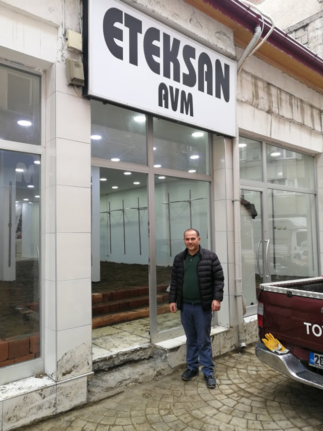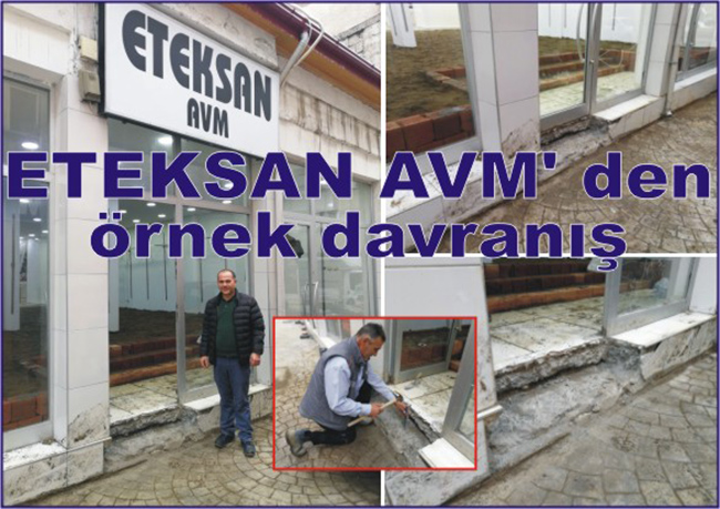 Bulancak genelinde birçok esnafın kaldırımı işgal ettiği hatta yolu dahi dubalarla kapatarak burası bana ait ya da benim kullanım alanı diye düşündüğü biz zaman diliminde olması gereken çalışmayı Eteksan alı veriş merkezi işletme sahibi Keramettin Karaoğlu yaptı. Yetkililerin Sosyal Belediye anlayışından uzak tamamen ticari zihniyet ve siyaseten bir söz söylemediği esnaf bu durum karşısında bu kaldırım bana ait ya da bu yol benim araç park alanım diyerek halkın hakkına göz koymaktadır. Böylesi bir düşüncenin yoğun olduğu zamanda ETEKSAN AVM’den örnek davranış Bulancak objektiflerine böyle yansıdı. Eteksan alı veriş merkezi işletme sahibi Keramettin Karaoğlu yapılması gerekeni yaparak iş yerinin Doğu Sokak tarafında ki kapısını yolun içine girerek değil kendi iş yerinin kotunu yol seviyesine indirerek çalışma başlattı. Olması gerekeni yapan Keramettin Karaoğlan Doğu Sokak yoluna basamak koyarak işten kaçmaması ve iş yerinin kotasını yol seviyesine indirerek hak yememesi çevre esnaflar tarafından da takdir edildi.