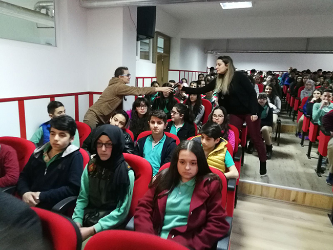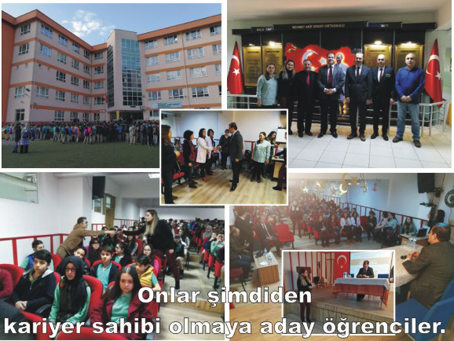 Giresun Bulancak’ta Kariyer Günleri Etkinliği Bulancak Mehmet Akif Ersoy Ortaokulu son sınıf öğrencilerine yapıldı. Mehmet Akif Ersoy Ortaokulu Rehber öğretmenleri Ayşegül Genç ve Murat Arslan Rehberlik Servisi ve okul idaresi alanında uzman kişilerin katılımıyla ortaokul son sınıf öğrencilerine meslek tanıtımları yapıldığı görüldü. Ortaokul son sınıf öğrencilerine yapılan Kariyer Günleri Etkinliğinde Bulancak kaymakamı Niyazi Ulugölge katıldı. Kaymakamlık mesleği alanında uzman kişi olarak kariyer günlerine katılan Bulancak Kaymakamı Niyazi Ulugölge öğrencilerin sorularına cevap verdi. Bulancak İlçe Milli Eğitim Müdürü Şenel Bulut’un da hazır bulunduğu programda ortaokul son sınıf öğrencileri Ulugölge’ye mesleki ve özel sorularıyla karşılıklı sohbet ettiler. Bulancak kaymakamı Niyazi Ulugölge okulun çok amaçlı Salonu’nda yaptığı konuşmasında;” Sevgili öğrenciler ne yaparsanız yapın sevdiğiniz işi yapın. Bugün sizler daha şanslısınız ve daha iyi imkânlara sahipsiniz. Evet, önemli bir kariyer mesleğidir kaymakamlık. Ancak düşünün bir şehrin bütün sorumluluğu üzerinizdedir. İlçenin her türlü sorunlarıyla ilgilenmek zorundasınız. Vatandaş çeşitli sıkıntılarla size geliyor. Siz de ona göre değişik mesleklerin yaklaşımıyla yaklaşıyorsunuz. Ona karşı bulduğunuz çözüm önerilerinizle memnun ettiğiniz kişilerin duasıyla duyduğunuz mutluluk her şeye değiyor. Vazife gereği ülkemizin değişik yerlerine gidiyoruz, ülkemizi ve insanlarını daha yakından tanıyarak onlara hizmet veriyoruz” dedi. Bulancak Mehmet Akif Ersoy Ortaokulu Salonu'nda yapılan programa yoğun katılımın olduğu görüldü. Toplantı sunum ve hazırlanış şekliyle oldukça bilgilendirici ve eğitici bir program olarak öğrencilere sunulduğu görüldü. Mehmet Akif Ersoy Ortaokulu Müdürü Mustafa Gündoğdu ve Müdür Yardımcıları Musa Fikret Dombaycı, Güray Türker ve okul öğretmenleri öğrencilerinin Bulancak Kaymakamı Niyazi Ulugölge’ye birbirinden değerli ve güzel soruları kendilerini oldukça memnun ettiği görüldü. Bulancak Mehmet Akif Ersoy Ortaokulu Salonu'nda yapılan program öğrenciler için oldukça verimli ve bir o kadar da güzel geçtiği objektiflerimize böyle yansıdı.