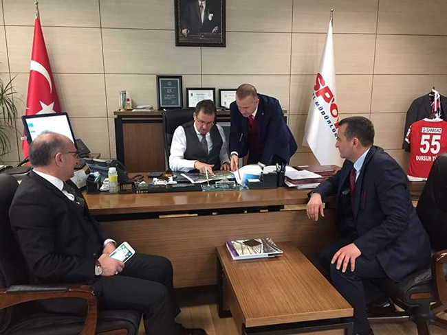 Gençlik ve Spor Bakanlığı Tesislerden Sorumlu Genel Müdür Yardımcısı Dursun Türk'ü makamında Keşap Belediye Başkanı Mehmet Emür’ünziyaret ettiği objektiflere böyle yansıdı. Darısı Giresun’un en büyük ilçesi Bulancak Belediye Başkanı Recep Yakar’ın olmasını diliyoruz. Giresun ilinin en büyük ilçesi Bulancak olmasına rağmen ve halen nüfusunun çoğalması için gayret gösteren yetkililerin köyden farkı olmayan yaşam şartlarıyla ilçe halkına dayatılan Bulancak uzun zamandan bu yana kapalı spor salonundan mahrum bir ilçe olarak tanınıyor. Öte yandan Giresun Keşap ilçesinin Kapalı Spor Salonu’nun 2018 yatırım programına alınması ile ilgili istişare darısı Bulancak’a dedirtti. Bu saatten sonra da çok zor olduğu düşünülen Bulancak Kapalı Spor salonu bir başka bahara kaldı. Oysa daha düne kadar Bulancak’ta var olan mevcut spor salonun da bölgesel Basketbol, Voleybol ve Hentbol müsabakaları ve şampiyonları yapılan ilçe Spor Salonu’nun yerle bir dilmesi tüm salon sporlarını bitirirdi. Oysa 4 yıldan bu yana bir şey yapılmayacağı anlaşılan. Bulancak Spor Salonu gençlerin rehabiletesi için de çok önemli bir unsur olarak gösteriliyordu. Gel gör ki, tüm bunlardan yoksun olan Giresun’un en büyük sözde ilçesi Bulancak Kapalı Spor salonu başka bir bahara mı kaldı?