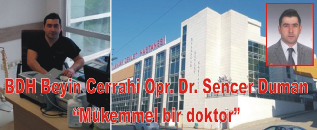 Bulancak Devlet Hastanesi’nde Beyin Cerrahi Opr. Uzm. Dr. Sencer Duman’ın kısa zaman önce göreve başlaması ve akabinde hastaların yeni gelen doktor için sosyal alanda yazdıkları memnuniyetin ötesinde övgü sözleriyle anılması başarısının hiçbir şekilde tesadüf olmadığının göstergesidir. BDH’de hasta ve hasta yakınları tarafından söylenen sözden sadece birkaç tanesini siz değerli okuyucularımızla paylaşmak istiyoruz. Hasta’nın sosyal alanda paylaştığı sözler, “Mükemmel bir doktor. Ameliyat sonrasında çok memnun kaldım. Allah razı olsun. Bir doktor olsa olsa bu kadar iyi olabilir” Bahsi geçen Bulancak Devlet Hastanesi’ne yeni gelen Opr. Dr. için hasta ve hasta yakınının söylemiş olduğu bir ikinci söz siz, “Ben………, yeni ameliyat oldum 6 platin takıldı 3 fıtık alındı ve 2. gün ayağa kalktım. 7 günde taburcu oldum. Bütün ağrılarım son buldu. Doktorum Sencer Duman bey, Giresun'un en iyi beyin ve sinir cerrahisi uzmanı bana göre. Allah uzun sağlıklı ömürler versin her şey için sonsuz teşekkürler” sözleri durduk yere söylenemez. Bulancak halkı ve bölge halkı böylesi doktorlarımız yüceltmesi ve değer göstermesi başarıyı getireceği gibi diğer doktorlarımız da Bulancak ilçesine ahde vefa var düşüncesiyle gelmesine vesile olacaktır.