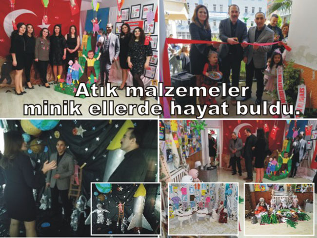 Bulancak Özel Elma Şekeri Kreş ve Gündüz Bakımevi Küçük Kaşiflerin Yaratıcı Hayallerini proje ve resim adı altında atık malzemelerle yaptıkları birbirinden güzel çalışmalarla sergide buluşturdular.