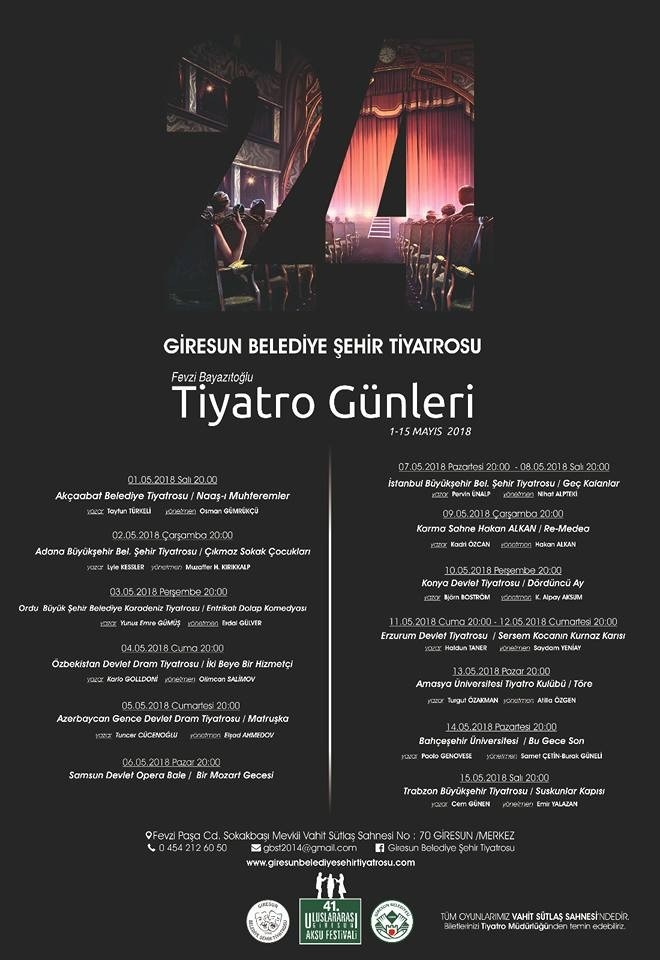 Giresun Belediye Şehir Tiyatrosunun düzenlediği 24. Fevzi Bayazıtoğlu Tiyatro Günleri başlıyor.
