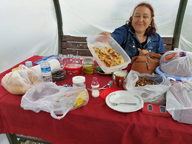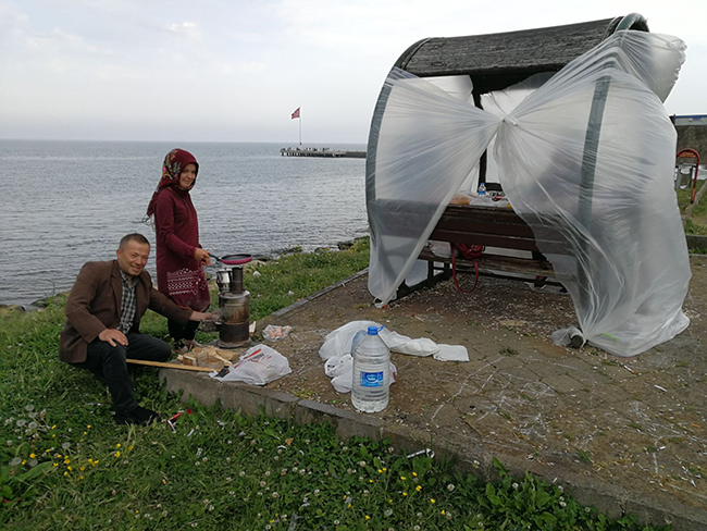 Semaverde çay yapıp, semaver buharıyla yumurta hazırlayan aile Karadeniz sahil boyunca en uzun sahile sahip çıktılar. Bir zamanlar Türkiye’nin en uzun İskele manzara eşliğinde Pazar kahvaltısını yapan aile ansızın yağan bahar yağmuru altında unutamayacak bir gün geçirdiler. Hava şartlarına hazırlıklı olan aile yanında getirdikleri naylonu halkın oturma alanı olarak yapılan oturma grubunun etrafına sararak bahar yağmurunu eğlenceye dönüştürdüler. Dündar ve Korkmaz ailelerinin unutamayacakları Pazar kahvaltısına bulancakhaber.net’de davet edildi. Karadeniz'in en uzun sahili olan Bulancak ilçesinin önünde Bahar yağmuru altında keyifli saatler geçiren Dündar ve Korkmaz aileleri bulancakhaber.net objektiflerine böyle yansıdılar. Karadeniz boylu boyunca uzanan İskele manzarası eşliğinde, hava alanına inen kalkan uçaklar görüntüsünde gerçekleşen kahvaltı semaverle yapılan çayla bir başka güzel geçtiği görüldü. Bulancak genelinde hafta sonları birçok aile bu şekilde kahvaltı yaptığı sahil alanında halkın oturma gruplarının çoğalması ve bakımdan geçmesi bekleniyor. Özellikle bu alanların belirli aralıklarla çeşmelerin ve tuvaletlerin yapılması ticari zihniyetten uzak halka açık alanların çoğalması bekleniyor.