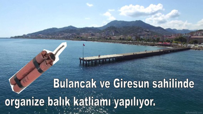 Bulancak Devlet Hastanesi karşısında Giresun Bozbağ Fındık fabrikası arasında sahil bandında günün ilk ışıklarıyla birlikte havanın kararmasına kadar sahilde gezermiş gibi dolaşan insanlar balık tespiti yapıp yer belirledikten sonra ikinci bir grup gelerek denize balıkların olduğu bölgeye dinamit atarak balık avladıkları duyumu alındı.